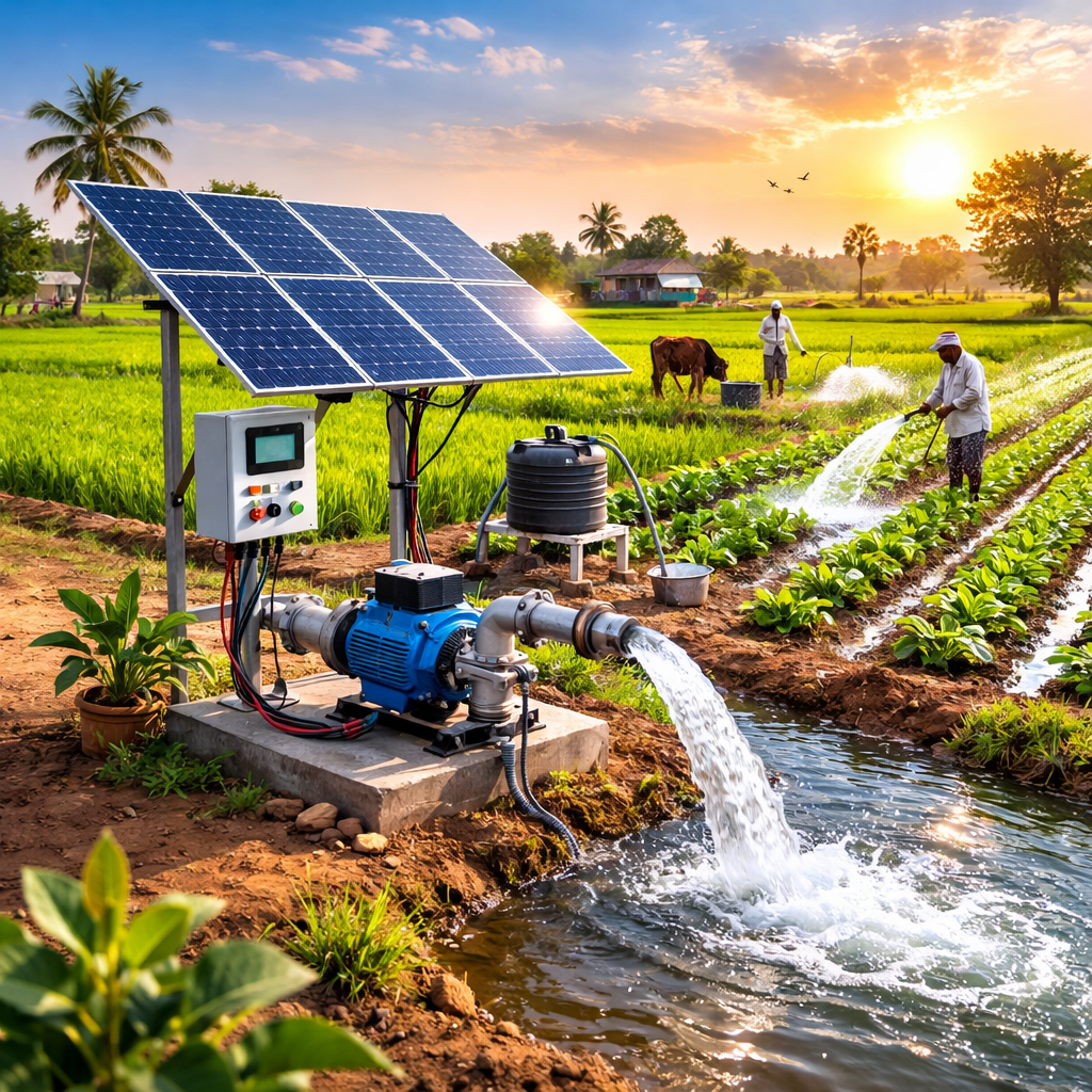 Solar water pumps use photovoltaic (PV) panels to convert sunlight into electricity, powering DC or AC motors to pump water for irrigation, livestock, and domestic use. They are eco-friendly, low-maintenance alternatives to diesel/electric pumps, ideal for remote areas. Key components include solar panels, a controller, and the pump unit.