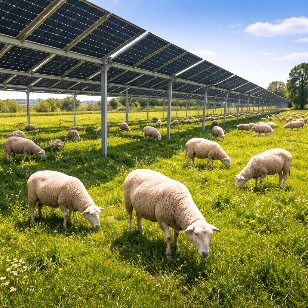 A type of agrivoltaic practice where livestock, commonly sheep, graze beneath solar panels to naturally control vegetation growth. This approach reduces maintenance costs, supports sustainable land management, and allows efficient use of land for both energy generation and animal grazing.
