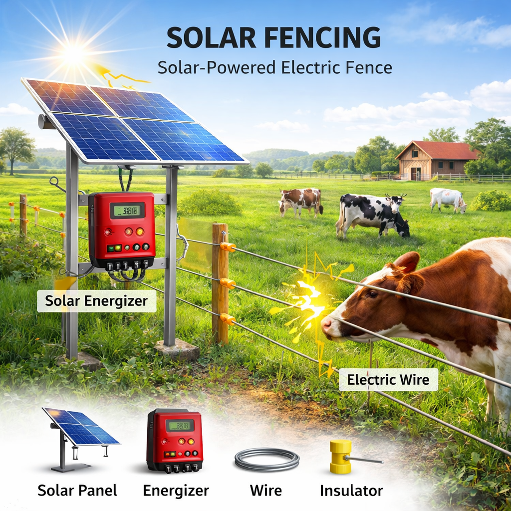 Solar fencing is an eco-friendly, off-grid security system that uses solar energy to power electric, non-lethal wires, creating a 24/7 deterrent against intruders or wild animals. It is commonly used for agricultural land protection, residential security, livestock containment, and boundary protection, delivering a safe, high-voltage, pulsed shock upon contact.